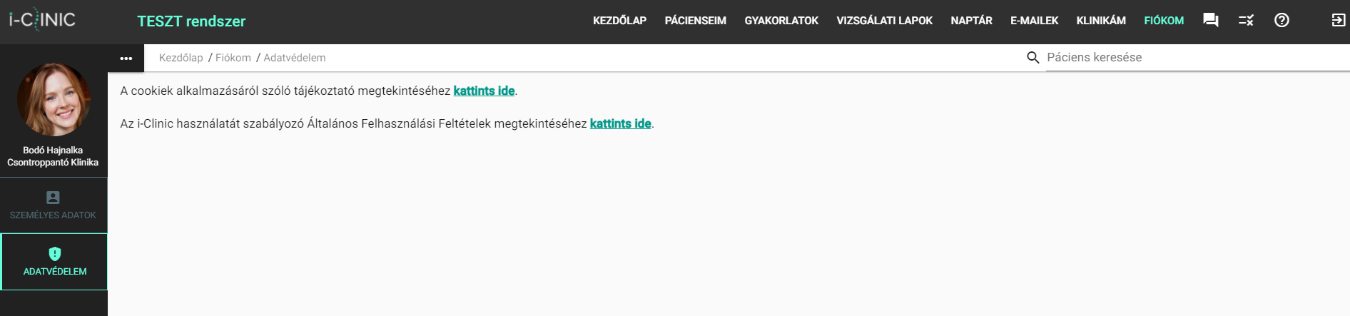 Ezt a dokumentumot az elfogadást követően bármikor megtekinthetik a klinika adminisztrátorai a Fiókom/Adatvédelem menüpont alatt.